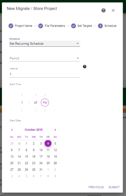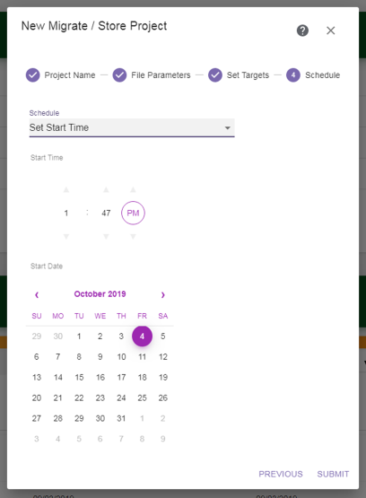 | 2. | Using the calendar, select the Start Date on which to execute the Migrate / Store job. |