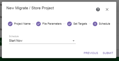 Figure 58 The Schedule screen of the Migrate / Store wizard. |