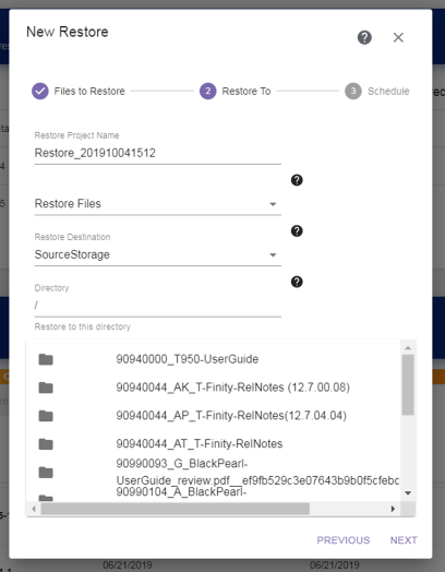 3. From the Restore Destination drop-down, select one or more previously configured storage location as the destination. See Configure Storage for instructions for configuring a storage location. If you are restoring files, the directory structure of the Restore Destination displays.