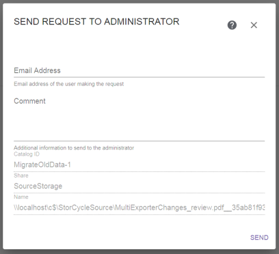 Enter your Email Address and, if desired, a Comment, and then click Send to email the request to the Spectra StorCycle solution Administrator.